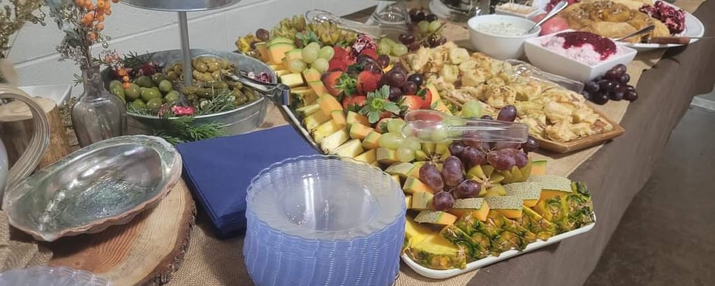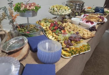 Typical options include: Caprese Tortellini Skewers, Meatballs, Pop-Overs, Charcuterie Boards, Fruit Boards, Veggie Boards, Stuffed Mushrooms, Bread and Dips, Brie Platters etc.