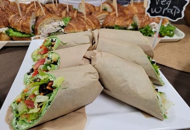 Deli Style Wraps served w/ Deli cuts, Homemade Herbed Cream Cheese, Garden Veggies on a Spinach or Tomato Basil Wrap